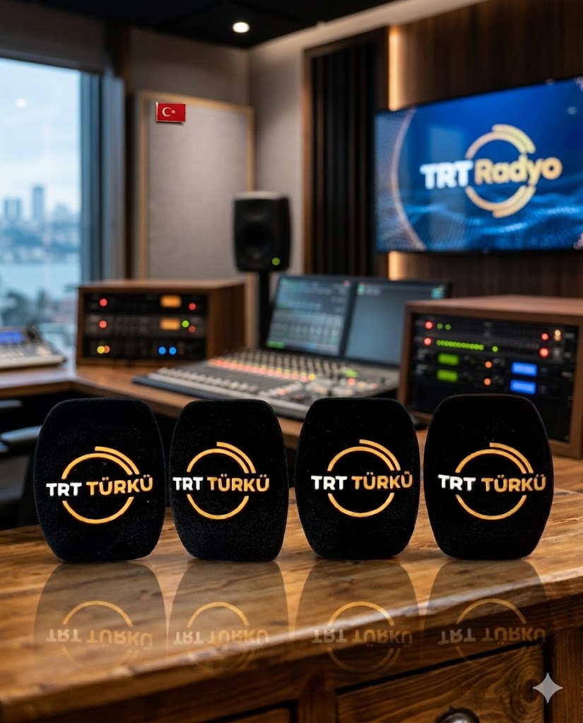 Özel logo baskılı mikrofon süngeri; TV, radyo ve dijital yayın için.